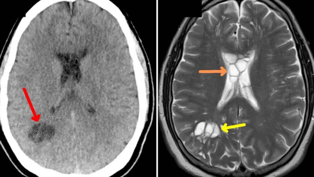 Un estadounidense que se quejaba de migrañas persistentes descubrió que su cerebro albergaba una tenia, que llegó a su organismo al ingerir el hombre tocino poco hecho.