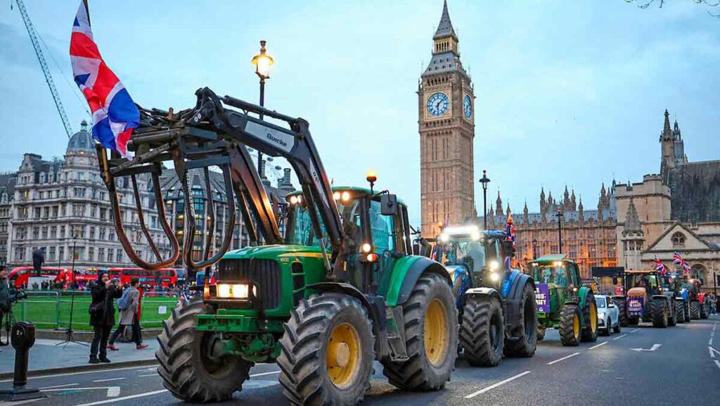 Un grupo de agricultores en un convoy formado por más de 120 tractores protestó este lunes en el centro de Londres para exigir al Gobierno del Reino Unido que tome medidas en materia de seguridad alimenticia…